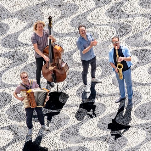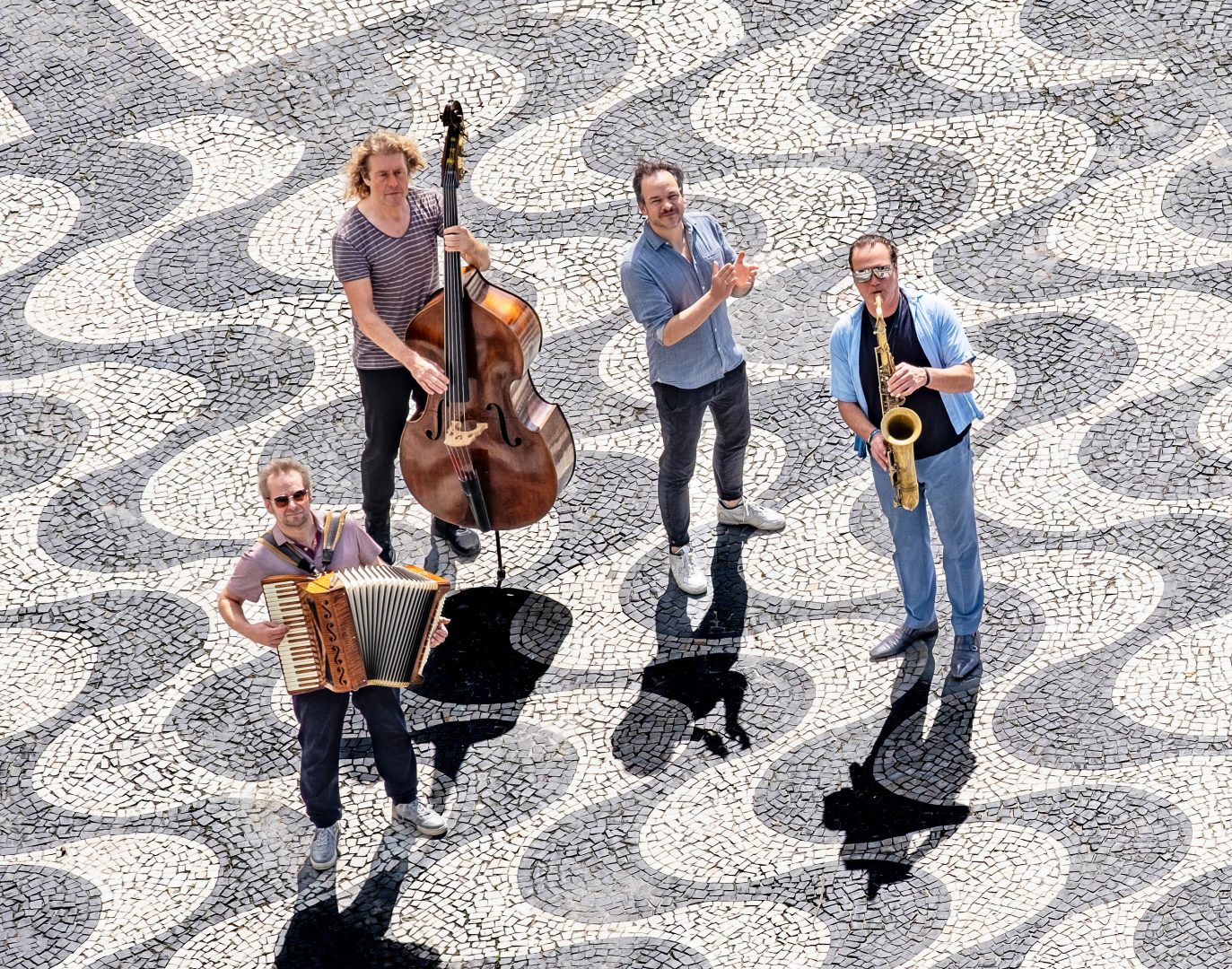 Mit dem extravagant-spielwitzigen Akkordeonisten Andreas Hinterseher und dem durch verschwenderischen Ideenreichtum glänzenden Pianisten Chris Gall leben sie ihre Musik im Hier und Jetzt. Dies erinnert an vier Burschen, die fröhlich musizierend über die südlichen Stadtplätze und Jahrmärkte zogen. So geschehen in den Anfängen von Quadro Nuevo.