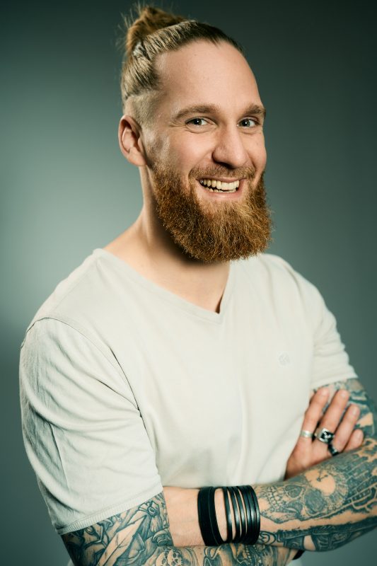 … passt in keine Schublade. Stark tätowiert mit Vollbart und vielen Ringen an den wohl manikürten Fingern weist er mit saTrischen Erzählungen aus dem alltäglichen Leben spielerisch und äußerst humorvoll auf heuTge GesellschaXsprobleme hin und liefert dabei Denkanstöße für Veränderungen.